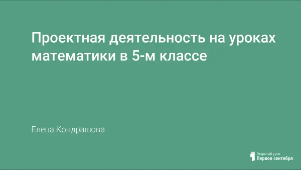 Применение учебных проектов как компонента системы образования открывает большие возможности для развития самостоятельного, критического мышления ученика, формирования у него определенных личностных качеств через активные способы действия. Задача учителя – создать условия для проектной деятельности, творческой самореализации учащихся при обучении математике.