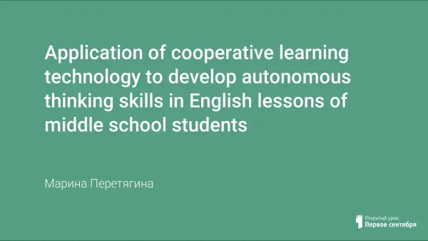 Статья посвящена применению технологии кооперативного обучения для развития навыков автономного мышления у учащихся средней школы на уроках английского языка. В статье рассматривается понятие автономии, необходимость развития навыков автономии специально для учащихся средней школы. Автор использует метод эксперимента, вводя в учебный процесс серию дневных занятий ассистента, и анализирует полученные результаты. Исследование представляет интерес для преподавателей английского языка, методистов и исследователей в области образования. Статья может быть полезна для разработки и внедрения новых методов преподавания английского языка, направленных на развитие критического мышления и самостоятельности учащихся.