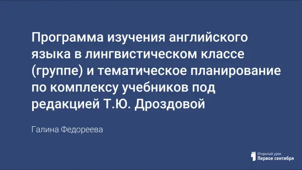 В русле усиления коммуникативной направленности обучения иностранному языку в средней школе, создания классов с углубленным изучением английского языка и работе в профильном классе по комплексу учебников Т.Ю. Дроздовой возникла необходимость создания программы.