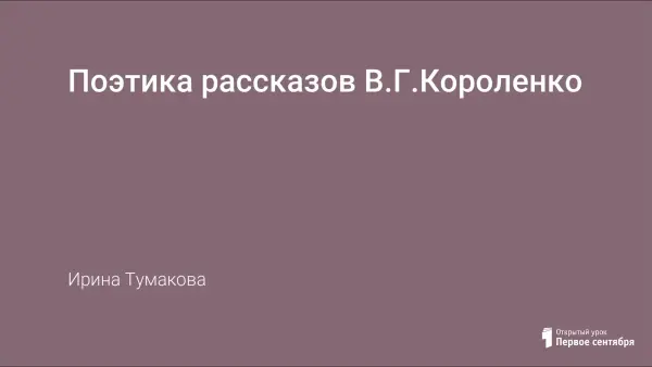 Поэтика рассказов Короленко заключается в синтезе реалистического и романтического подхода к миру. Его интересует экзотическая сторона жизни. Герои - отважные личности, стремящиеся к свободе.