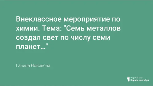 Внеклассное мероприятие по химии для 8–11-х классов проведено в рамках предметной недели химии с целью расширения и углубления знаний учащихся по теме «Металлы».