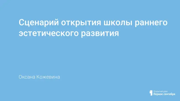 В статье представлен сценарий открытия школы раннего эстетического развития, ориентированный на детей 5-6-летнего возраста. Они являются непосредственными участниками игровой программы: отгадывают загадки, танцуют, читают стихи и т.п. Цель мероприятия: привлечение внимания к школе и создание положительной мотивации к обучению.