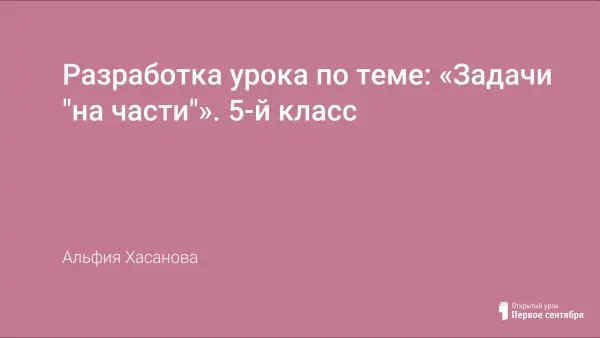 В данной статье представлена разработка урока решения текстовых задач на тему: «Задачи "на части"» в 5-м клacce. Рассматривается один из способов решения задачи - арифметический. Арифметический способ решения задач является одним из лучших средств развития самостоятельного творческого мышления учащихся.