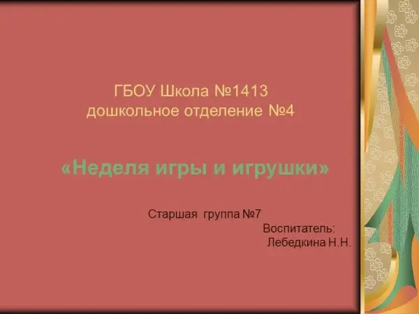 Презентация "Неделя игры и игрушки в старшей группе"