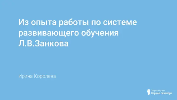 В данной статье я хочу поделиться опытом работы по системе развивающего обучения Л.В. Занкова. Cистема Л.В. Занкова - это технология будущего, которая должна занять свое достойное место не только в начальной, но и в средней и в высшей школе. Технология Л.В. Занкова, направленная на творческое развитие личности, формирует продвижение в развитии всех учеников и "сильных" и "слабых", способность индивидуума решить самыми различными способами проблемы, встающие перед ним, а это главная задача обучения на сегодняшнем этапе развития общества.