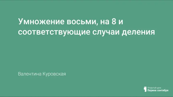 Данный урок способствует закреплению и совершенствованию вычислительных навыков, знания таблицы умножения и деления; способствует развитию познавательного интереса, памяти, речи; расширяет кругозор, логическое мышление.