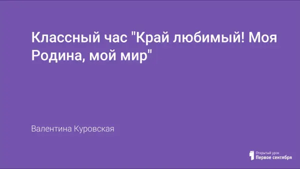 Урок посвящен формированию устойчивого, уважительного отношения к родной природе, своей малой родине, созданию эмоционально-положительной основы для развития патриотических чувств: любви и преданности Родине.