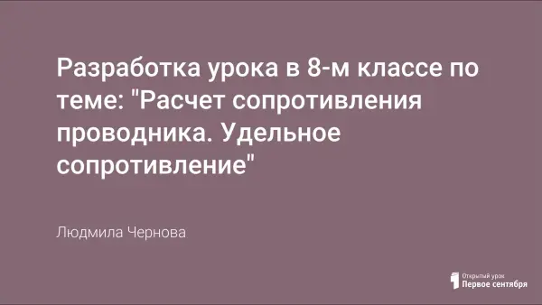 На занятии закрепляются навыки делать самостоятельно вывод по полученным экспериментальным данным; работать в группах; использовать формулу для расчета сопротивления проводника в решении задач.