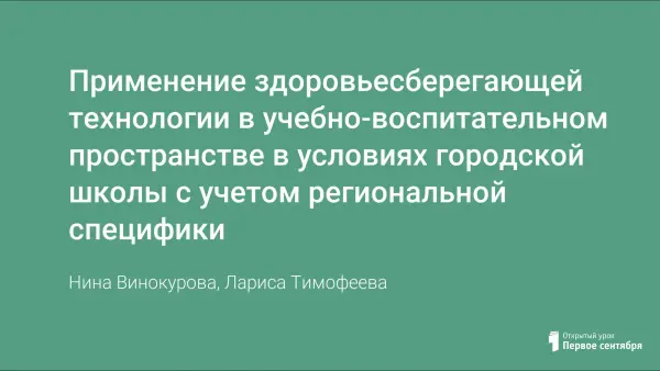 Применение здоровьесберегающей технологии в учебно-воспитательном пространстве в условиях городской школы с учетом региональной специфики