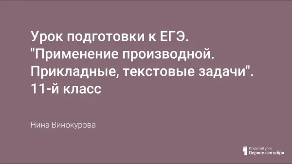 Цель: систематизация предметных знаний, умений, навыков, универсальных учебных действий (решение предметных задач). Основные понятия, изучаемые на уроке: применение производной в исследовании функций, решение прикладных, текстовых задач.