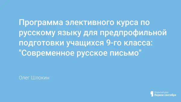 Данный элективный курс предназначен для всех учащихся, независимо от того, какой профиль обучения они выберут в дальнейшем. Школьники познакомятся с важнейшими этапами истории письма. Внимательное ознакомление с различными сторонами письма, с принципами русской графики и орфографии, с системой русского правописания даст представление об одном из разделов лингвистической науки, а также будет содействовать выработке прочных навыков правописания.