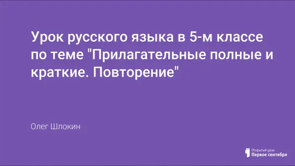 Представляемый материал – это урок повторения изученного в 5-м классе по теме «Имена прилагательные полные и краткие». На занятии обобщаются и систематизируются знания о правописании полных и кратких прилагательных, используется алгоритм. Урок построен на примерах из произведений А.С. Пушкина.