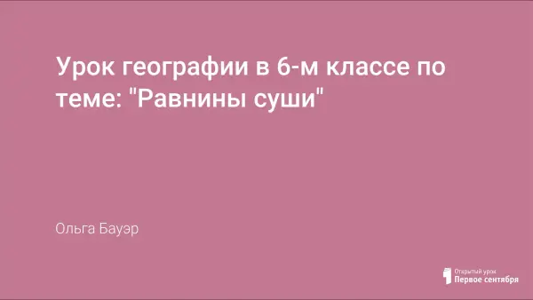 Цель урока: сформировать представление о видах равнин, продолжить развитие умения выделять причинно-следственные связи, продолжить формирование умения работы с физической картой, работы в группе с применением ИКТ.