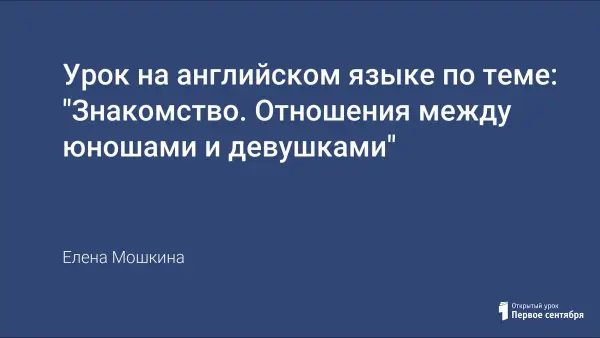 Данный урок взят из серии уроков, направленных на воспитание молодежи в духе толерантности, с учетом специфики гендерного подхода. В его структуре представлены повторение речевых клише - приветствия, прощания на английском языке, классификация разговорных фраз по стилям общения (официальный/неофициальный), расширение словарного запаса студентов по теме "Знакомство". В данном уроке используется методика прогнозирования, т. е. умения предвидеть ситуацию на основе минимальной информации. Итогом занятия является составление собственных диалогов студентами на основе просмотренного видеосюжета.