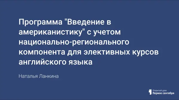 Данная программа по социально-педагогической сути соответствует задачам модернизации российского образования через обучение и иноязычной коммуникативной культуре. Предложенный курс поможет: во-первых, расширить и углубить содержание профиля, во-вторых, будет способствовать реализации межпредметных связей английского языка и других предметных областей. Старшеклассники расширят объем знаний о социально-культурной специфике Америки, научатся адекватно понимать лингво-культурные факты, практически применять усвоенные навыки в ближайшей зоне личных интересов, узнают азы профессиональной этики.