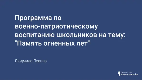 Программа по военно-патриотическому воспитанию "Память огненных лет", которая преследует цель: воспитать в обучающихся любовь к жизни как к основной человеческой ценности; патриотизм и гордость за свое Отечество; развивать такие нравственные начала, как гуманизм, сострадание, мужество и стойкость.