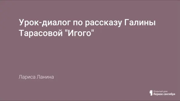 Урок-диалог по рассказу Галины Тарасовой «Игого» проводится в разделе литературное краеведение. Проблема поведения учащихся на переменах очень актуальна. На примере поведения героя рассказа шестиклассники рассуждают о том, как нельзя себя вести в школе на перемене, учатся смотреть на себя со стороны и контролировать свое поведение.