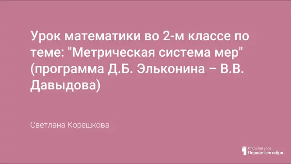 Задачами данного урока являются мотивация учащихся на введение и принятие понятия "метрическая система мер", организация деятельности детей по решению задач и выражений с именованными числами, а также развитие навыков самоконтроля, взаимоконтроля и самооценки.