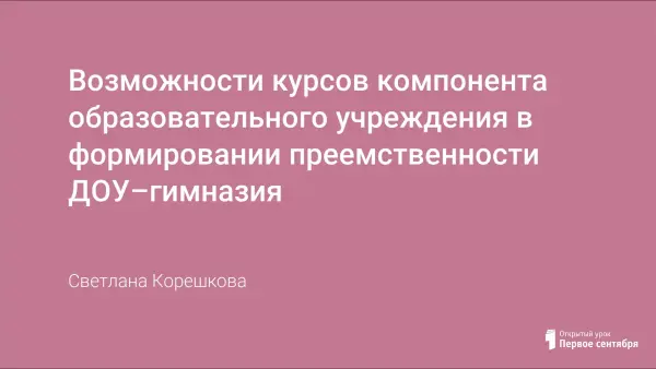 На изломе дошкольного и младшего школьного возраста происходит радикальная смена социальных ситуаций детского развития – от коммуникативно-игровой к учебной. При этом сохраняется общая для обоих возрастов особенность развития – формирование у ребёнка предельно универсальных, базовых человеческих способностей. В чём же особенность организации преемственности ДОУ именно с гимназией?