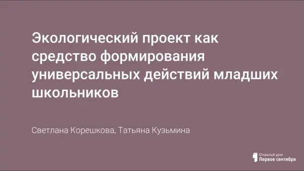 Экологический проект как средство формирования универсальных действий младших школьников