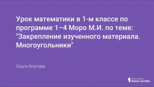 Данный урок представлен по программе "Школа России" 1–4. В уроке расширен материал, относящийся к геометрической пропедевтике. В частности, урок предполагает формирование у детей представлений о различных линиях (прямая, кривая), об отрезке, прямой, ломаной, многоугольнике. На уроке показаны упражнения, связанные с развитием у детей логических и пространственных представлений.