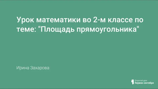 Урок построен в технологии деятельностного метода по программе "Школа-2000" (учебники Петерсон Л.Г. Математика. 2-й класс). Цель урока – сформировать способность к вычислению площади прямоугольника, ввести в речевую практику термин "формула". "Открытие" новых знаний с помощью подводящего диалога.