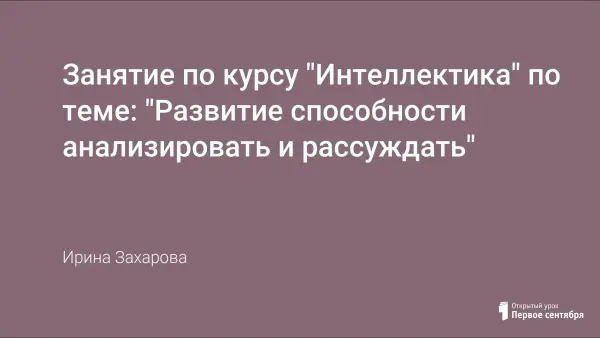 В занятие включены развивающие игры и упражнения, направленные на развитие способности анализировать, рассуждать, выявлять закономерности, устанавливать логические связи. Занятие способствует развитию памяти, внимания. Основное место на занятии занимают задачи А.З. Зака.