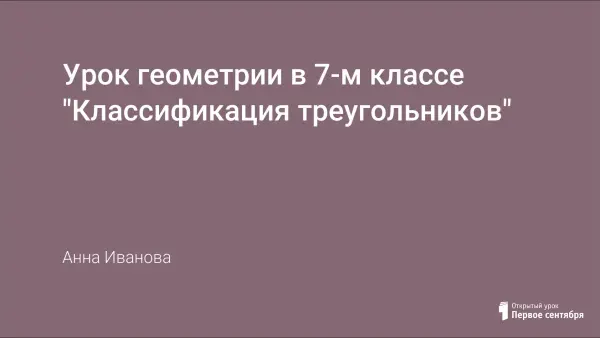 Урок изучения и первичного закрепления новых знаний. Урок-исследование с применением маршрутного листа. На уроке используется презентация. Цель урока: познакомить учащихся с классификацией треугольников, определениями треугольников, элементами и свойствами прямоугольного треугольника.
