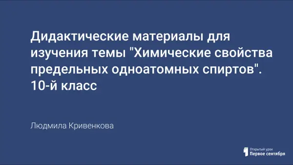 Презентацию и раздаточную дидактическую карточку можно использовать на уроке изучения химических свойств предельных одноатомных спиртов в 10-м классе.