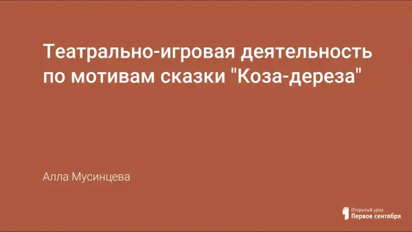 Моя работа в театрально-игровой деятельности по сказке "Коза-дереза" основана на игровых моделях, построенных на малых формах детского фольклора, ввожу детей в красочный и поэтический мир родного языка, и одновременно в мягкой и ненавязчивой форме даю урок нравственного воспитания.