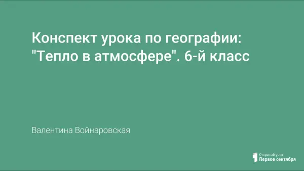 Цели урока: продолжить формирование у учащихся представлений и знаний об атмосфере; сформировать представления о закономерностях нагревания атмосферного воздуха от земной поверхности; продолжать развивать навыки работы с текстом, таблицами, иллюстрациями, расширить кругозор и умение владеть речью, обогащать словарный запас.