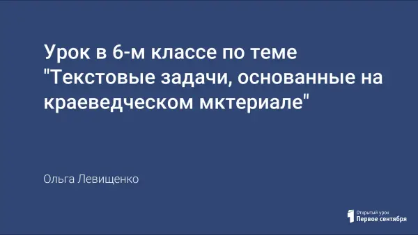 Урок решения текстовых задач в 6-м классе основан на краеведческом материале. Использование мультимедийной презентации, повышает интерес к информационным технологиям. Материалы, представленные в работе выглядят интереснее, красочнее, способствуя осознанному усвоению учебного материала, демонстрируют межпредметные связи.