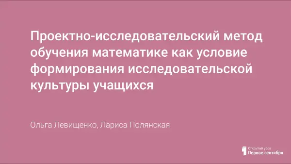 Проектно-исследовательский метод обучения математике как условие формирования исследовательской культуры учащихся