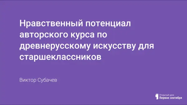 Факультативный курс "Древнерусское искусство" органично входит в учебный план, содержательно расширяя и углубляя базисный курс мировой художественной культуры. Основная образовательная цель авторской программы - подвести старшеклассников к пониманию специфики древнерусского искусства, полноценному восприятию его, расширить горизонты познания, сформировать из учащихся грамотных зрителей и слушателей. В связи с этим сообщить сумму знаний, помочь овладеть языком искусства, развить навыки и умения аналитического рассуждения о произведении.