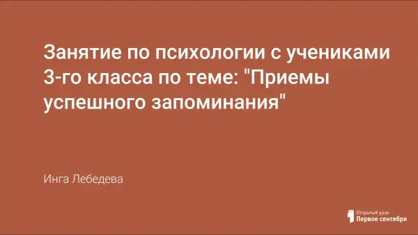 Вы осознаёте, что под напором огромного потока информации ученикам становится сложно запоминать школьный материал? Почему одни вещи дети в некоторых случаях запоминают, а в других забывают? Это занятие по психологии познакомит детей младшего школьного возраста с основными способами запоминания информации. Овладев ими, учащиеся смогут запоминать большее количество информации. Научатся концентрироваться в нужный момент, смогут избавиться от рассеянности.