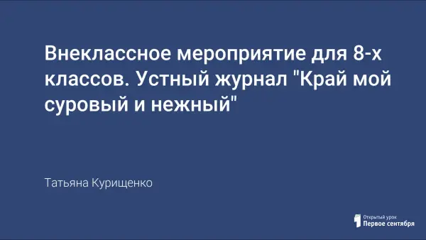 Внеклассное мероприятие посвящено географии Республики Саха (Якутия). Устный журнал - это переплетение научных, культурных и поэтических страниц, направленных на воспитание любви к такому суровому, но родному краю. Самостоятельно добываемая учащимися информация делает материал личностным, особо значимым и потому надолго запоминаемым.