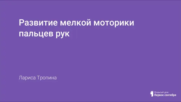 В вышеназванном выступлении есть ответы на вопросы: когда начинать работу по развитию мелкой моторики пальцев рук, как грамотно её проводить, на какие критерии развития функции речи и руки ориентироваться.