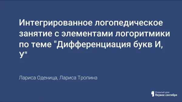 Интегрированное логопедическое занятие, проведённое логопедом совместно с учителем начальных классов, успешно реализовало цель занятия. Дети научились различать буквы и - у (кинетически и оптически сходные) изолированно, в слогах, словах, предложениях, в тексте путём выработки чёткой зрительно-моторной координации, совершенствования взаимодействия межанализаторных связей, развития психических процессов, мелкой моторики пальцев рук, пространственных и временных представлений. В ходе занятия у детей развивались речевые, просодические, двигательные, ритмические способности через воображаемые ситуации, логоритмические игры, элементы арттерапии.
