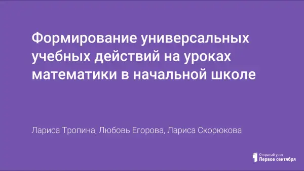 Формирование универсальных учебных действий на уроках математики в начальной школе