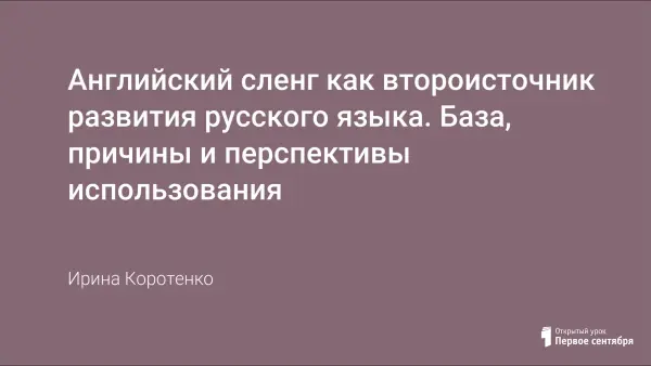 Одной из эффективных форм развития познавательного интереса учащихся к изучению иностранного языка может служить работа кружка. Предлагаемый материал может быть использован на занятиях кружка или для участия в школьных научно-практических конференциях. Актуальность данной темы – в том, что сленг потеснил и продолжает теснить нормативную лексику. В языке стали появляться слова, выражения, характерные для определенных групп и слоев населения. В наши дни сленг является неотъемлемой частью нашей жизни. Тема сленга очень близка подросткам. Музыка, которую они слушают, фильмы, которые они смотрят, изобилуют сленговыми выражениями, и, естественно, у учащихся возникают вопросы о значении отдельных слов и фраз. И узнать это они могут только познакомившись с таким понятием, как сленг.