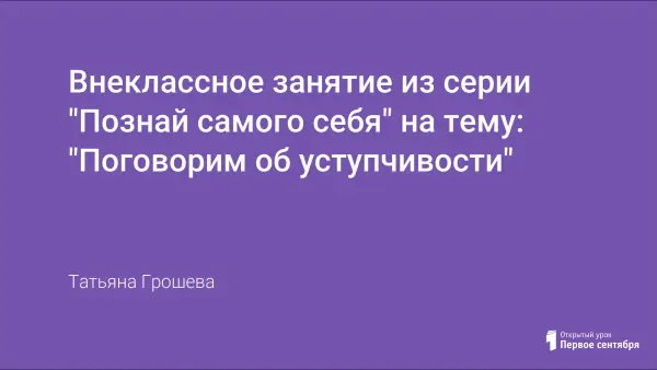 Уступчивость как признак силы (а не слабости), чувства собственного достоинства, воспитанности, хорошего характера. Уступчивость как форма поведения в коллективе, в семье, в кругу друзей. Речевые формулы, помогающие избежать конфликтов между друзьями (уступайте друг другу), между девочками и мальчиками (уступайте девочке), между слабыми и сильными (уступайте слабому). Контактные этикетные формулы: совет, извинение, согласие, одобрение.