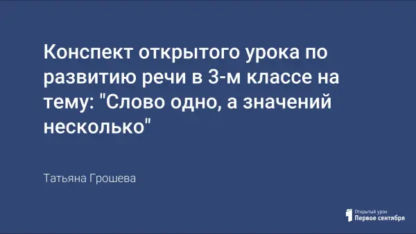 Урок по развитию речи на тему "Слово одно, а значений несколько" посвящен раскрытию такого понятия в русском языке, как многозначность слова. Многозначность слов является одним из свойств, свидетельствующих о богатстве, яркости и выразительности русской лексики. Слова в тексте могут употребляться как в прямом, так и в переносном значении. "Строить фразу и не допускать при этом переносного употребления слов, – писал Л.А. Булаховский, – значило бы, собственно, не выходить из границ вполне установившихся штампов; это означало бы пользоваться языком слишком анемичным, лишенным каких-либо живых, органически свойственных самой его природе сил".