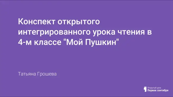 Интегрированный урок чтения "Мой Пушкин" - это своего рода итоговое занятие по результатам изучения четвероклассниками творчества великого русского поэта А.С. Пушкина.