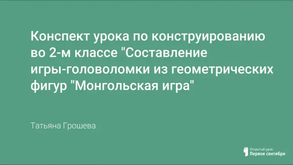 Урок конструирования имеет целью развитие конструкторских и графических умений, развитие воображения и основ мышления учащихся, а также формирование таких важных качеств личности, как самостоятельность, наблюдательность, сообразительность. Такие уроки вырабатывают усидчивость, учат планировать свои действия.