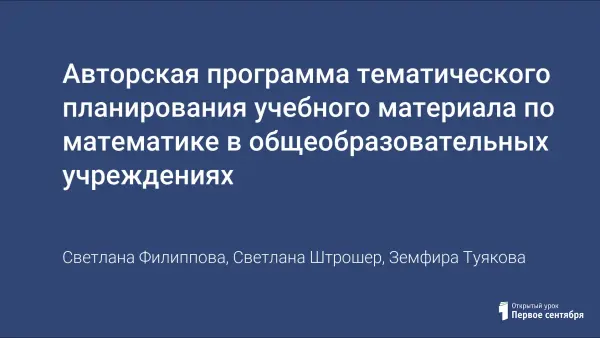 Авторская программа тематического планирования учебного материала по математике в общеобразовательных учреждениях