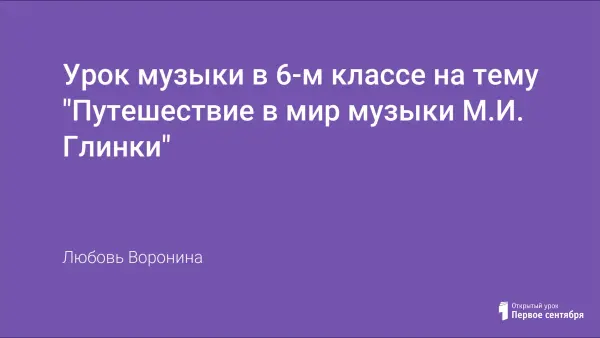 Урок в 6-м классе способствует возникновению интереса к музыки русского композитора М.И. Глинки. Особенно хочется отметить, что именно М.И. Глинка первый открыл стихию русского вальса, написав свой "Вальс - фантазию" для оркестра - этот шедевр, поражающий изысканностью вкуса, воздушностью, благородством, характерной именно для русского вальса.