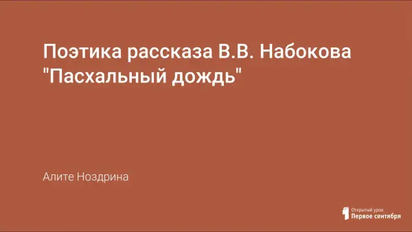Набоков - великолепный стилист, мастер метафоры и художественной формы. Он едва ли не последний писатель ХХ столетия, сумевший с помощью виртуозной словесной эквилибристики сохранить непрозрачность текста, зашифрованной и глубоко запрятанной тайны. В этом плане интересна поэтика рассказа «Пасхальный дождь», попытка исследования которой представлена в статье. Раннее произведение В.В. Набокова насыщено различными приёмами: литературными аллюзиями, запутанной, хитроумной игрой масками, приёмами одушевления вещи, зеркальных отражений, прямого и косвенного изображения героев, «потока сознания», снов.