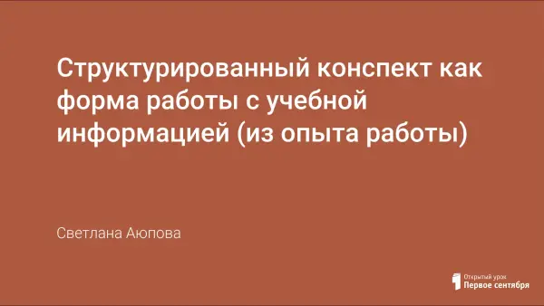 В статье представлен опыт работы по организации на уроках биологии деятельности учащихся с учебной информацией в форме структурированного конспекта - краткого письменного изложения содержания учебного материала по какой-либо теме в соответствии с заданным в графической форме шаблоном, заполняемым учащимися в ходе самостоятельной работы с информационным источником, или его составление. Материал включает описание организации работы учащихся, примеры структурированных конспектов.