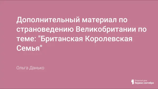 Так как одной из важных задач обучения английскому языку является расширение страноведческих знаний, я стараюсь включать в учебный процесс материалы, связанные с историей, культурой, традициями Англии. В рамках декады иностранного языка мы с ребятами решили провести мероприятие, посвященное Британской королевской семье. Тема вызвала огромный интерес и все с увлечением включились в работу. В результате поисков был собран большой материал, который может послужить хорошим дополнением к урокам по страноведению. В качестве наглядности мы использовали карту Лондона, портреты членов королевской семьи, видеофильм "The Royal Family".