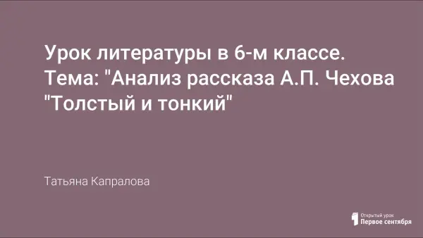 Урок литературы в соответствии с технологией критического мышления. Анализируем рассказ А.П. Чехова «Толстый и тонкий», выявляем особенности чеховского комизма, учимся видеть грустное и смешное в его рассказе. А.П.Чехов заставляет смеяться и грустить над проблемами конкретного человека. Его рассказы удивительно современны по содержанию и по форме. Они не подвластны времени.